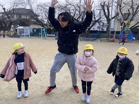 雪が降り、大喜びの子どもたち☃️❄️